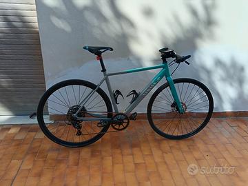Freni a disco idraulici cambio Sram aptx 11v mono corona da 46 rapporti 11/42 copertoni Swalbe One da 28 nuovi, pedali doppia funzione utilizzabili sia con scarpini che con scarpe normali, manopole nuove, possibilità di istallare appendici (comprese nel prezzo) telaio tg M in alluminio con forcella in carbonio