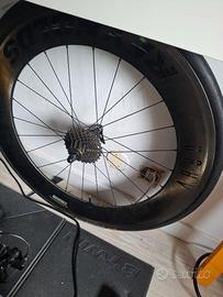 Come da titolo vendo CANYON SPEEDMAX con ruote allenamento REYNOLDS in carbonio (88 mm posteriore e 50 anteriore) + ruote gara DEDA (lenticolare posteriore e 100 anteriore)!!