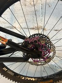 Bici perfetta, montata GX e Rockshox con impianto frenante Hope a 4 pistoncini e dischi flottanti. Numerosi dettagli viola.