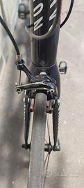CANYON ULTIMATE CF SL 9.0 TEAM MOVISTAR TAGLIA 60/XL, La Bicicletta è stata usata relativamente poco, circa 1 mese e mezzo l'anno per 5 anni , quindi si presenta in buono stato, in particolare il telaio è in ottime condizioni, oltre alla normale usura di gruppo componenti e catena presenta una piccola ammaccatura sul cerchio posteriore, (vedi foto)qualche difetto sulla sella, e qualche normale graffietto su pedali e componenti( escluso telaio). La bici è equipaggiata con: gruppo componenti Campagnolo Chorus ( pedivelle, freni a pattino su cerchio, cambio) tubo sella Ritchey Comp ( semi nuovo ), pedali Look, e ruote Campagnolo Eurus. Prezzo di listino al Nuovo 2'900,00 €