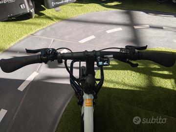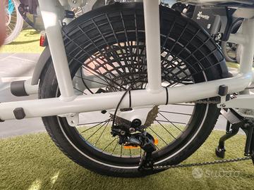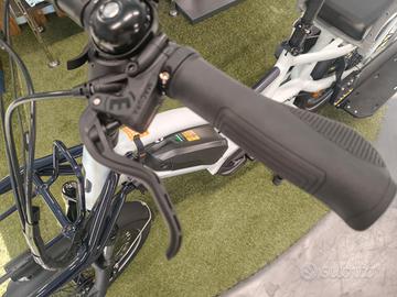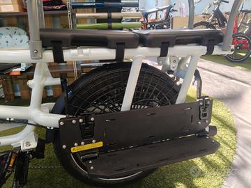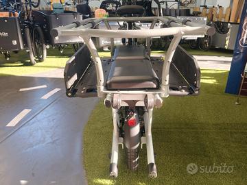 Vendo cargo bike long tale nuova in offerta come Back to school con motore centrale Shimano E7000 con batteria da 504 Wh, cambio a 10 velocita', due cuscini, barre posteriori, pedane laterali, portapacchi anteriore e freni a disco idraulici Magura.