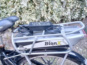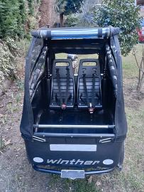 Marca Winther, modello Kangaroo Cargo E, motore BionX P250HT RX, 48V, 250 Watt, batteria da 48V appena ricellata con celle Samsung (passando da 8.8Ah a 14.4Ah), carica batterie nuovissimo, freno idraulico e cambio Shimano.