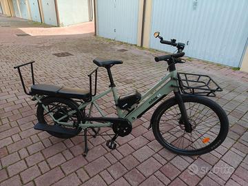 come da titolo vendo bicicletta elettrica Cargobike Long Tail, modello Nilox C3 / Sum Alpa prezzo di listino 2800€, molto comoda e bella esteticamente con batteria integrata nel telaio. Con doppia batteria e sedili porta passaggeri acquistati a parte. Perfetta ed usata solo per brevi spostamenti. Ottima soluzione per spostarsi in città anche con due bambini o per qualsiasi esigenza giornaliera.
