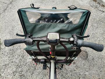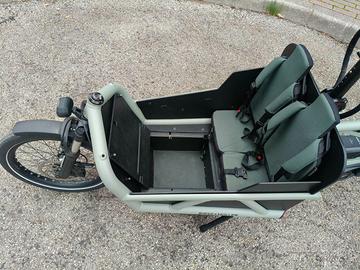 Vendo Cargo bike Riese & Muller Load 60 touring con disposizione per doppia batteria, motore Bosch cargo line Cruise, cambio automatico Enviolo, biammortizzata, freni a disco idraulici, luci anteriori e posteriori Supernova. Panca per due bimbi e capottina incluse.