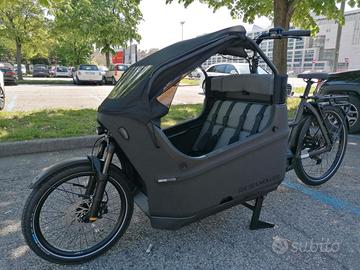 Vendo cargo bike Packster2 70 family colore Urban grey, batteria da 625 Wh, motore Bosch cargo line, display Purion 200 , seggiolino doppio per bambini, copertura del box modello Buggy, cambio Shimano Cues 10 V