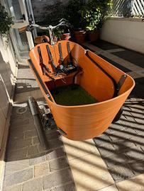 bici elettrica cargo bike con seduta bimbi in legno