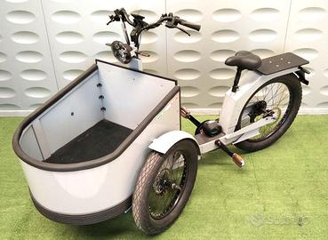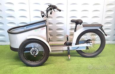 Luci: Faro anteriore a LED , posteriore con luci di posizione stop e frecce a LED Ruote: ruota posteriore 24 x 2.70 pollici, ruote anteriori 20 x 2.70 pollici con cerchi a doppia camera e raggi robusti Carichi: cassone fino a 100 kg , sella fino a 100 kg Dimensioni Cassone: lunghezza circa tot cm 230 - larghezza circa cm 87 - lunghezza cassone cm 113 - cassone in plastica - Peso totale : 64 kg Autonomia: 40-60 km Batteria: agli ioni di litio (48V 15Ah) Tempo di ricarica: circa 4 ore Motore due versioni: 1 motore nel mozzo ruota posteriore 48V 500 Wh / 2 - motore centrale 48V 500 Wh Centralina di controllo: Led con 4 livelli di velocità e avanzamento a passo d'uomo.