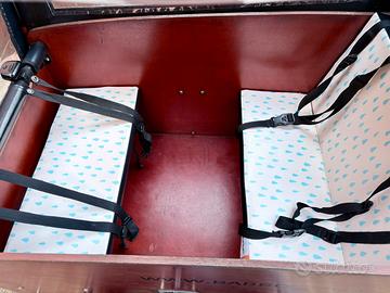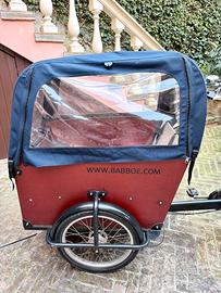 Vendo Babboe Big muscolare 4 posti con cuscini originali Babboe, 2 luci anteriori perfettamente funzionanti, cambio Shimano, cappotta inverno-estate originale Babboe. Due panche pieghevoli all’occorrenza e 4 cinture per legarsi in sicurezza. —> Preferibile ritiro sul posto <—