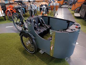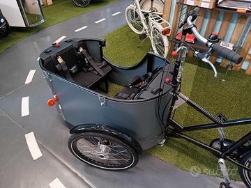 Vendo cargobike pensata per trasportare fino a 4 bimbi, comodo ingresso, grazie alle ruote autosterzanti la guida è molto intuitiva. La capote invernale è inclusa, possibilità di box colorato o motore centrale per la pedalata assistita.