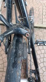 bici in ottimo stato, forcella in carbonio, qualche graffio da usura, freni al 90% ,catena nuova, cambio shimano 3×8.
