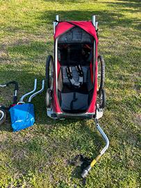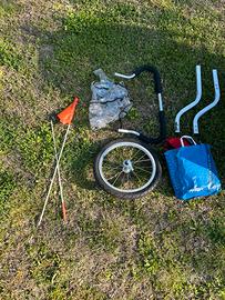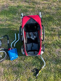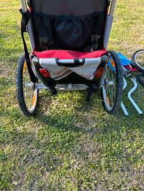 Vendo carrellino per bici da 1 posto. Adattabile a passeggino e jogger con ruota anteriore o coppia di ruote. Completo di chiusura ler vento e pioggia. É marchiato Chariot, azienda poi rilevata da Thule che produce lo stesso modello per cui garanzia di qualita. Dotato di ammortizzatori regolabili, bandierina di segnalazione. Lievi segni di usura che non compromettono l’utilizzo.
