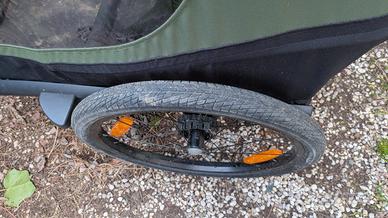 Carrello robusto e spazioso, facile da agganciare alla bici.