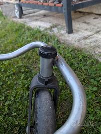 Usato come passeggino per due bimbi piccoli, non ci sta in macchina piccola montato (uscivamo a piedi). Si smonta facilmente. Ruota anteriore saldata leggermente storta ma per uso che ne ho fatto nessun problema.