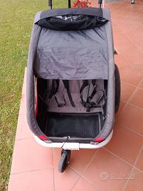 Comodissimo e robusto carrello per trasporto di due bambini. Ottimo stato, usato poco e dotato di ganci per traino con qualsiasi tipo di bicicletta e di ruota anteriore per essere usato come passeggino. Bretelle, parasole, zanzariera e parapioggia. Dotato di ampio "baule" . Le ruote si staccano per richiuderlo comodamente.