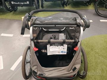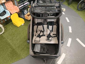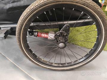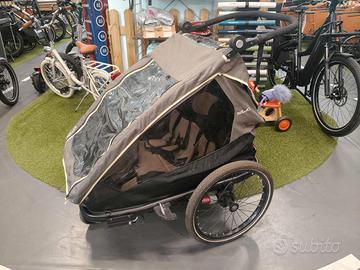 Vendo carrello XLC Duo da bicicletta praticamente nuovo, parapioggia, zanzariere, sedile imbottito, ruota anteriore a sgancio rapido e maniglione per trasformarlo in passeggino, ruote posteriori ammortizzate, bandierina, doppio gancio per attaccarlo a due bici,