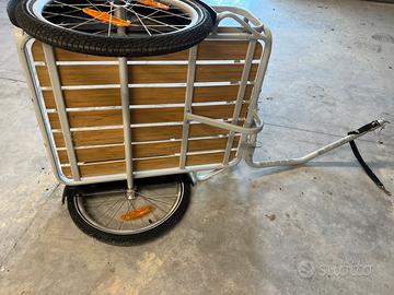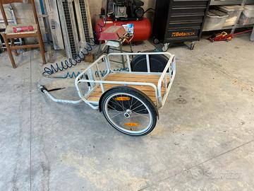 Carrello bici ikea comprato qualche anno fa e mai usato. Solido e comodo per trasportare cose con base in doghe di legno e ruote con pneumatici con camera d’aria vendo per inutilizzo . Euro 100