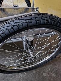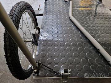 Carrello per Bicicletta per trasporto cose, nuovi pneumatici rinforzati, pianale in lamellare marino, rivestimento in pvc industriale ad alto spessore.