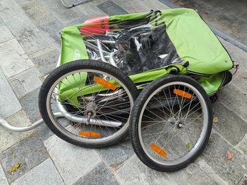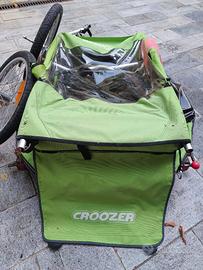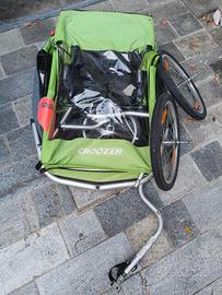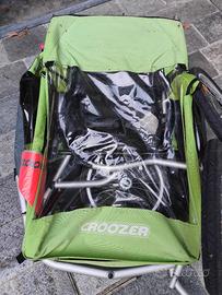 Carrellino rimorchio bici per bambini biposto Crooozer for 2 Portata 40kg, due bambini. Ottimo anche come trasporto oggetti. Copertura antipioggia e antivento. Terza ruota per utilizzo passeggino. Doppio gancio per attacco a due biciclette (non contemporanemente). Ripiegabile per trasporto in auto. Usato ma perfettamente funzionante. NO SPEDIZIONE
