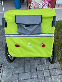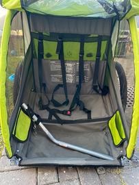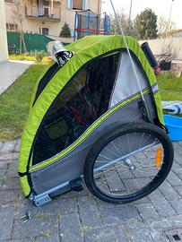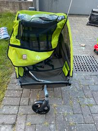 Carrello traino per bici, biposto. Molto comodo completo di ruota e manubrio per trasformarlo in passeggino. Facile da utilizzare nelle varie modalità, in ottime condizioni.