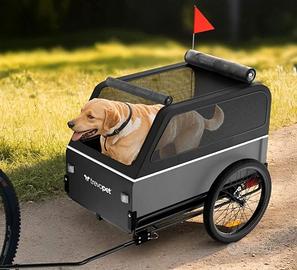 Rimorchio per cani di taglia grande fino a 45kg: Ampia cabina da 90 × 56,5 × 64cm con struttura robusta, perfetta per cani grandi. Spazio confortevole per sedersi o sdraiarsi durante ogni uscita.
