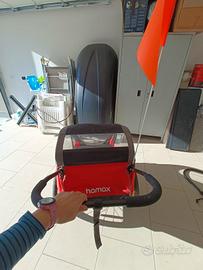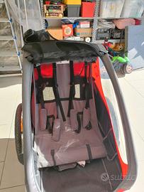 Carretto bici, utilizzabile anche come passeggino. massimo due bimbi, peso totale trasportabile 47 kg. Vano nella parte posteriore per portare borse. dotato di copertura a rete e antipioggia. No spedizione
