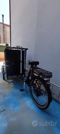 Triciclo banco frigo utilizzabile sia per vendita gelati che bibite bici con pedalata assistita banco frigo con batteria di mantenimento tutto caricabile con corrente domestica 220vz. Compreso di carica batterie nessun lavoro da fare tutto perfettamente funzionante ottimo stato