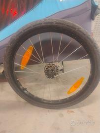 Comodissimo carriolo da attaccare alla bicicletta, con apposito elemento meccanico per la connessione alla ruota, biposto per trasporto bimbi con cinture di sicurezza