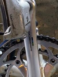 Vendo bicicletta da corsa del famoso telalista Casati di Monza. Bici in acciaio Columbus a giunzioni della metà anni 80. Tubo orizzontale da 53, monta leve freno, pinze freno, cambio, deragliatore e guarnitura Shimano 600 ( predecessore dell'attuale integra). Cambi al telaio con manettoni indicizzati a 7 rapporti ( pignoni nuovi) . Si può vedere e provare al mio domicilio,posso spedire a vostro carico.