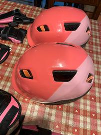 Vendo coppia di caschetti per bici roller pattini, taglia 53-56 cm BTWIN (decathlon) in ottimo stato, usati molto poco. Anche la parte interna in spugna è in ottime condizioni (vedi foto). Compresi nell’offerta due completi di paraginocchia/paragomiti/parapolsi.