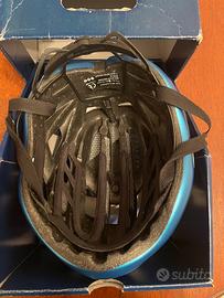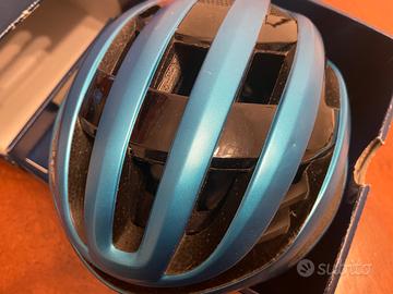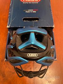 Casco Abus Airbraker, misura M, colore azzurro, ottime condizioni, poco usato e senza alcun segno di usura, fatta eccezione per un paio di piccoli urti, non dovuti a caduta, ma ad un paio di contatti con una porta e con lo spigolo della porta basculante del garage, visibili in foto.