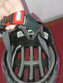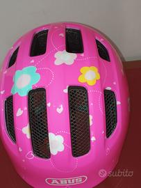 Casco nuovo mai usato marca Abus taglia M (circonferenza testa 50-55 cm) - Materiale: Policarbonato; - Materiale interno: poliestere espanso, schiuma rigida che assorbe gli urti - Protezione collo, tempie, mento e bordo anteriore a forma di visiera per proteggere il viso; - Rotella per regolare l'altezza. Spazio per i bimbi con capelli lunghi; - 4 prese d'aria e 4 uscite d'aria per il sudore; - zanzariere nelle prese d'aria per non fare entrare gli insetti.
