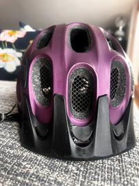 Kako bici color viola metallizzato. Praticamente nuovo ancora con etichette interne. Visiera nera davanti che si stacca. Possibilità di mettere una luce dietro dove c’è la lampadina bianca. Funziona con pila.