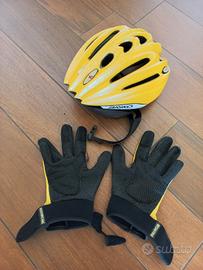 Vendo caschetto giallo per cicilisti e pattinatori, taglia 1 regolabile (55-58, 58-62) e guanti invernali gialloneri. Entrambi gli oggetti in ottime condizioni, senza danni