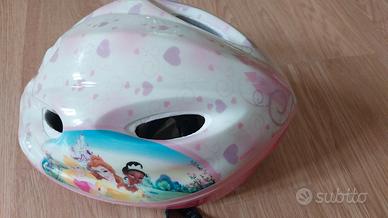 Casco da bici taglia M per bambine, con rappresentate le iconiche principesse Disney. Acquistato da Decathlon