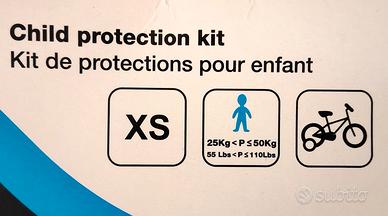 Casco da bici per bambini marca BTWIN Mod.KH 300 di Decathlon (misura 52/56 cm), protezioni ginocchia e gomiti BTWIN adatte per un peso da 25 a meno di 50 kg.