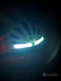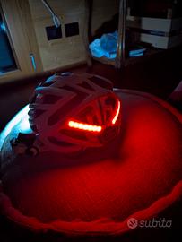 Questo casco è dotato di LED ad alta luminosità, presenta luci frontali bianche e luci posteriori rosse con sensori luci stop posteriori integrato. Interno con rete anti insetto sulle aperture frontali.