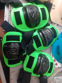 casco bike marchio briko, peso 305 g misura 54-58 cm, più coprisella in gel e set di protezione ginocchiere e gomitiere.