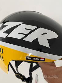 Casco Crono Lazer mod victor 2020 ex Team Jumbo Visma. Casco Crono Tom Leezer Mai usato Mis 55/61 corrispondente ad una M/L Leggerissimi segni sulla visiera che non compromettono la vista! Vedere bene tutte le foto prima di decidere con l'acquisto.