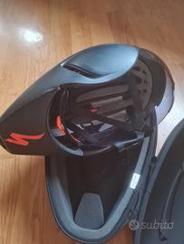 completo di scatola, custodia rigida, 2 visiere/mascherine (1 trasparente ancora nella confezione originale e 1 color fumo montata), interni/imbottitura casco di ricambio nella sua confezione originale.