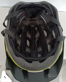 Casco Met Crossover, taglia 52-59, colore Lime, calotta in policarbonato, visiera rimovibile, luce led posteriore integrata.