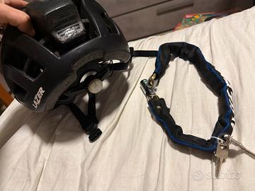 casco da bicicletta e lucchetto da biccicletta