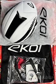Bellissimo e leggerissimo casco aero Ekoi AR14 (comprato nuovo da sito ufficiale on-line), taglia M (55-58 cm, 250g.) usato a malapena 5 volte, perfetto in tutto, nessun graffio o rigature, vendo solamente perché non mi calza benissimo la taglia M e avrei preferito una taglia S. Compreso con il casco: - 3 diverse imbottiture - sacca per trasporto - documenti