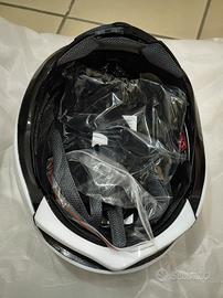vendo casco colore bianco con scritte nere, nuovo, perché trattasi di un regalo di compleanno mai utilizzato e lasciato nella sua scatola originale.