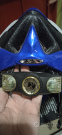 Casco protezione ciclismo marchio ked Siri argento blu con sistema regolazione cinturini con visiera .Un po' sgretolata la parte interna come da foto
