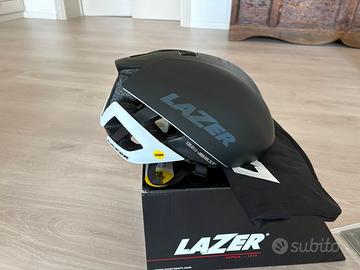 In ottime condizioni, con sistema di protezione MIPS. Taglia M Compreso di Aeroshell Aeroshell Genesis è una copertura in plastica che si adatta perfettamente al casco Lazer Genesis. Copre le aperture di ventilazione, migliorando così l'aerodinamica del casco e offre anche protezione dalla pioggia e dal vento. L'Aeroshell è facile da mettere sul casco e può essere arrotolato quando non viene utilizzato.