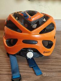 Casco Mountain bike Scott arancione e blu. Con frontino rimovibile. Prezzo non trattabile