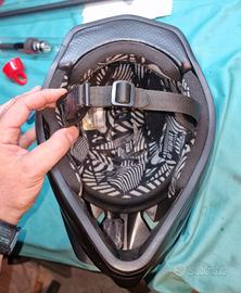 Presenta all'interno due velcri adesivi zona orecchie che non ho rimosso in quanto utilizzavo un interphone, invisibili perchè coperti dalle imbottirure e un attacco GoPro sotto la visiera.