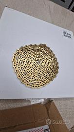 Vendo pacco pignoni 9v shimano deore xt CS M770 11-34 con 300 km di usura, praticamente nuovo. Insieme alla sua catena kmc x9sl titan-gold 9v superlight che come si può notare nella foto che ho fatto prima di smontare il tutto, non ha il minimo allungamento ed è in splendide condizioni. I componenti sono stati ripuliti con ultrasuoni e sembrano nuovi. La catena la vendo con scatola, pezzo eccedente e due false maglie di ricambio kmc gold.