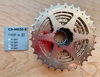 Cassetta Shimano HG50-8 a 8 velocità con rapporti 11-30 per corpetto HG Shimano.