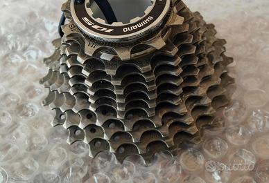 Dentatura 11x25 .Percorsi 100 km e poi sostituita con 105 11/30. Praticamente muovo. La ghiera è del 105 nuovo che ho sostituito ma la cassetta pignoni è ULTEGRA.
